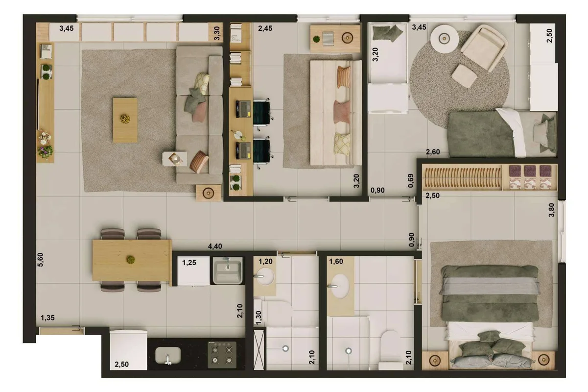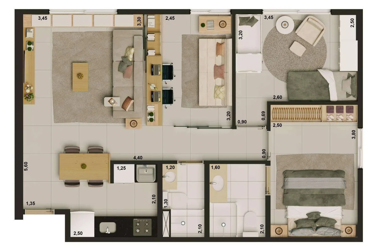 Empreendimento pronto, paredes internas em Drywall que permite flexibilidade de layout