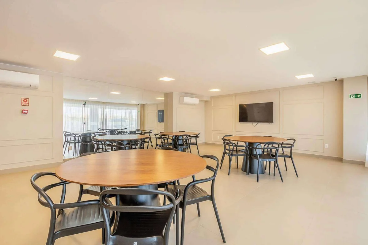 Salão de festas com copa e lavabo